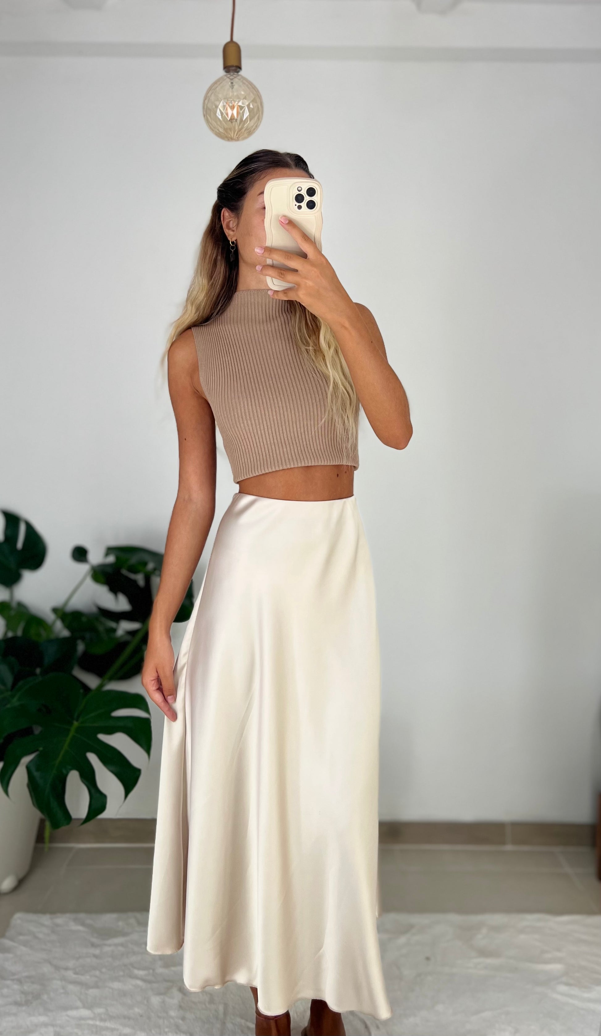 Questa gonna in raso è perfetta per ogni occasione. Realizzata con materiale di alta qualità, conferisce un look elegante e sofisticato. Grazie alla sua versatilità, può essere indossata sia di giorno che di sera, rendendola un must-have nel tuo guardaroba. Non rinunciare alla bellezza e alla comodità con questa gonna in raso.