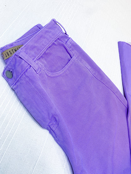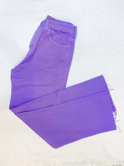 Jeans Wide Leg Viola, l'ultima tendenza moda! Realizzati con un tessuto viola di alta qualità, questi jeans donano una vestibilità ampia e confortevole, ideale per qualsiasi occasione. Aggiungi un tocco di colore al tuo guardaroba con i nostri jeans viola e sfoggia uno stile unico e alla moda.