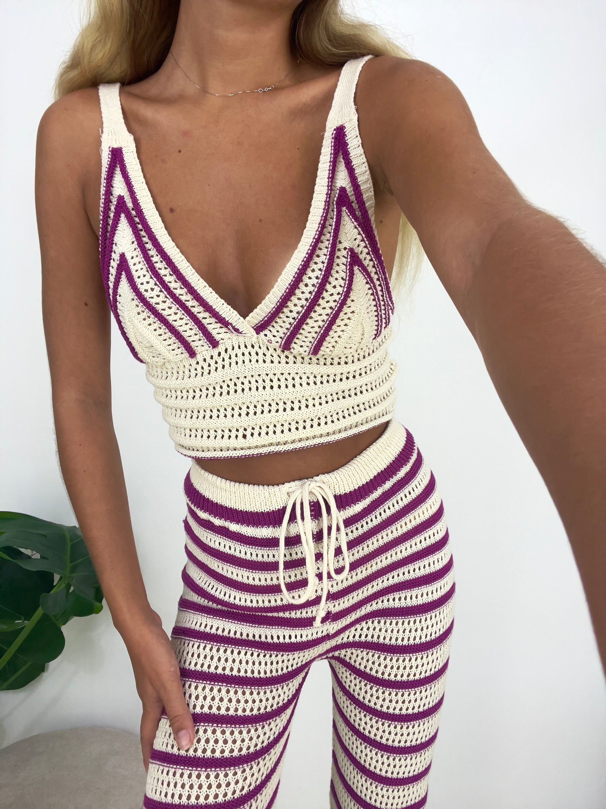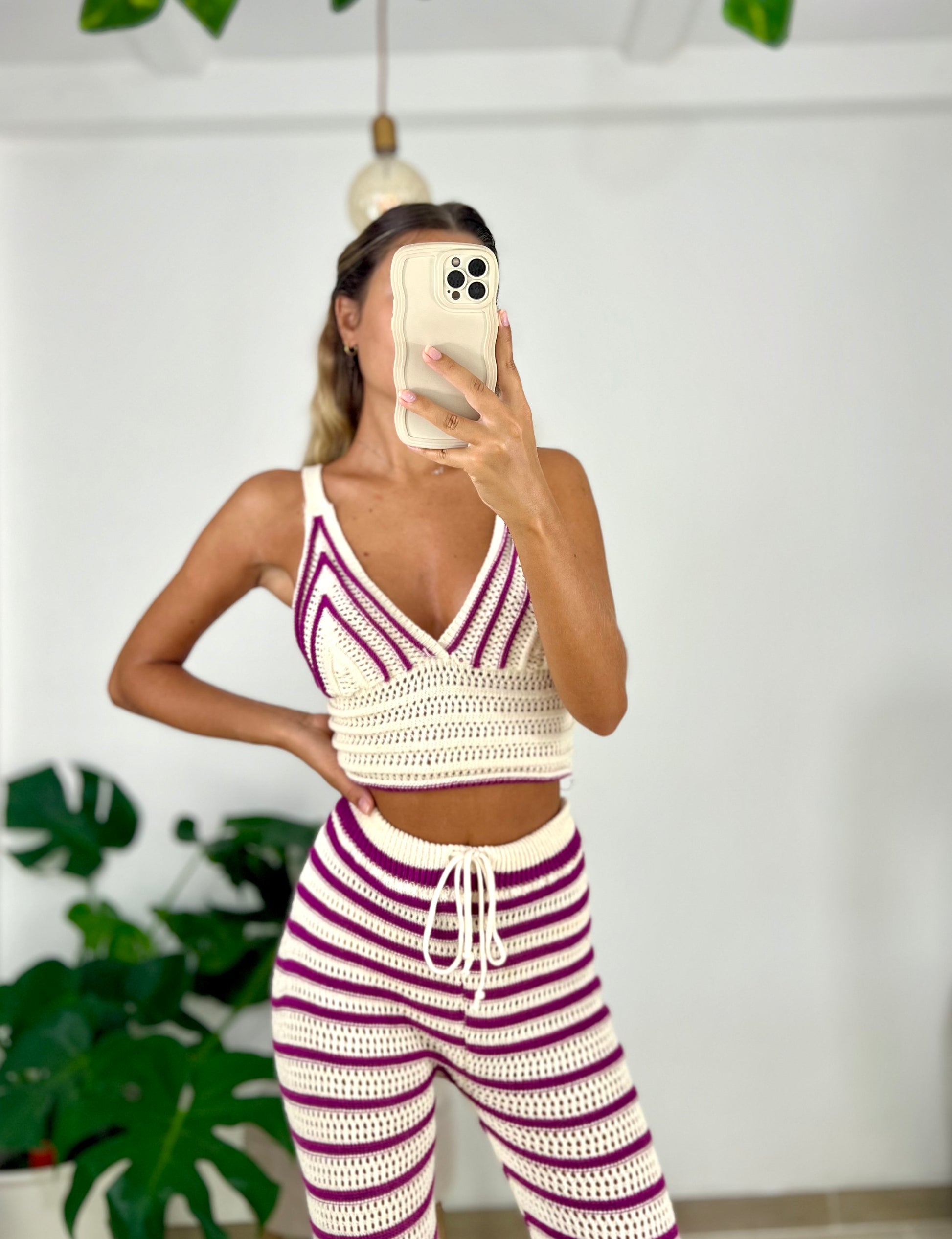 Il Completo Uncinetto Magenta è il connubio perfetto tra eleganza e artigianalità. Realizzato a mano con uncinetto, include completo top e pantalone. Il suo esclusivo design unico garantisce comfort e stile senza pari. Lasciati conquistare dalla bellezza di questo completo artigianale.