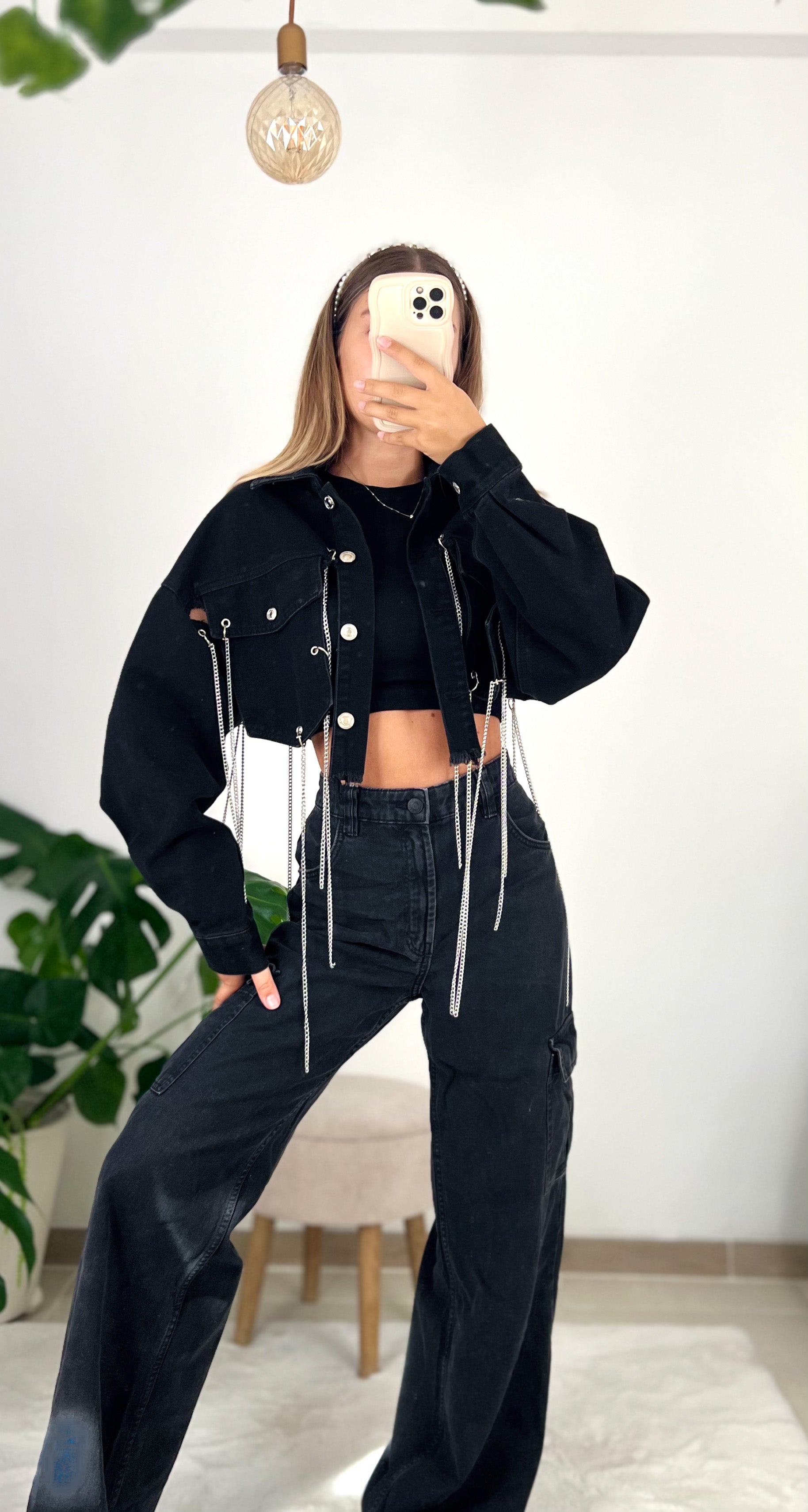 Realizzata con una giacca in jeans nera, perfetta per ogni occasione. Tessuto resistente, comoda vestibilità e stile senza tempo. Ottima per uno stile casual-chic e per un tocco di personalità in più al tuo look.