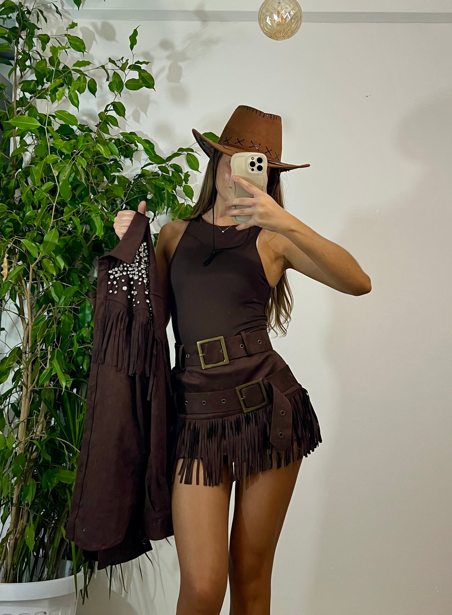Questa gonna in camoscio è l'ultima parola della moda. Con le sue frange alla moda, ti farà risaltare tra la folla. Il camoscio di alta qualità offre una sensazione di lusso mentre il design semplice e versatile rende questa gonna perfetta per qualsiasi occasione. Acquista oggi e sii sempre al passo con le ultime tendenze.