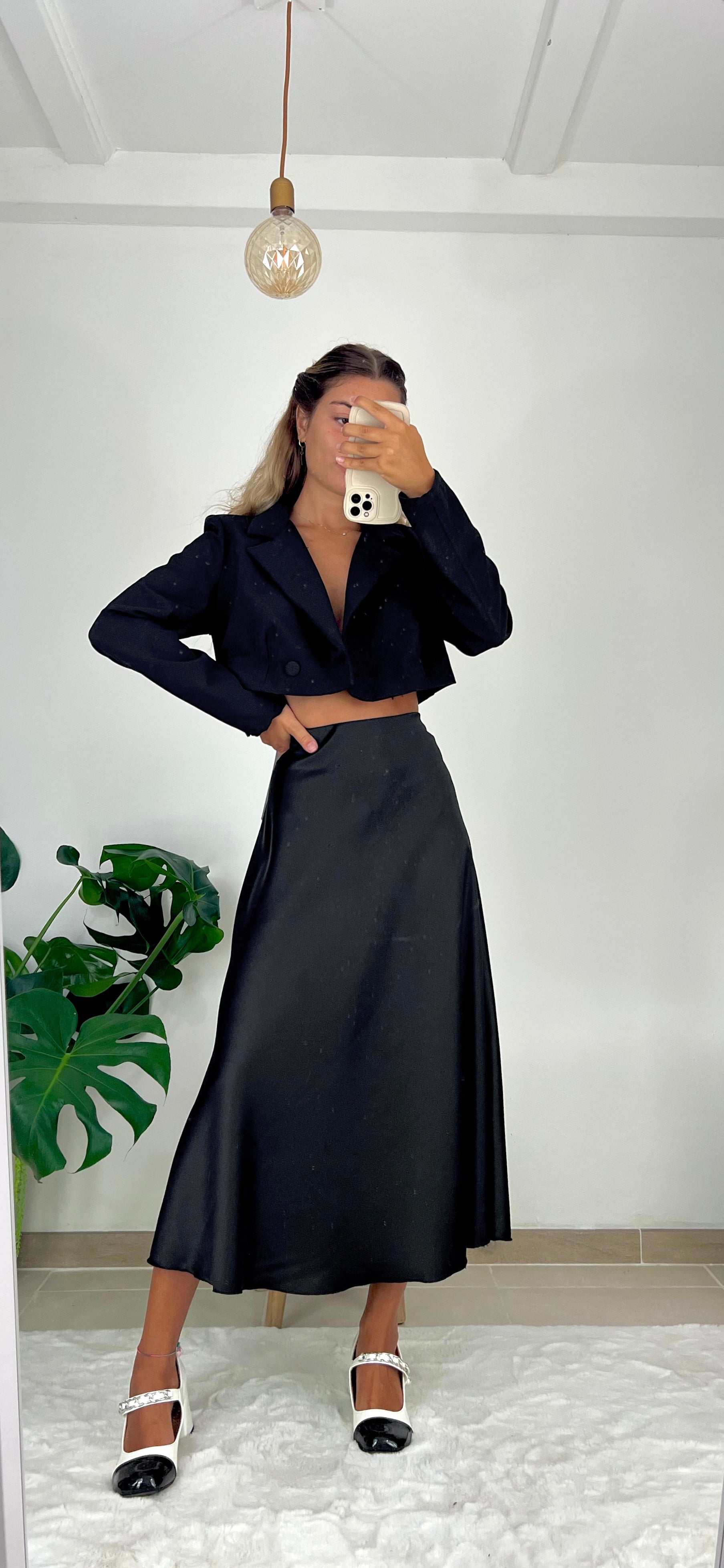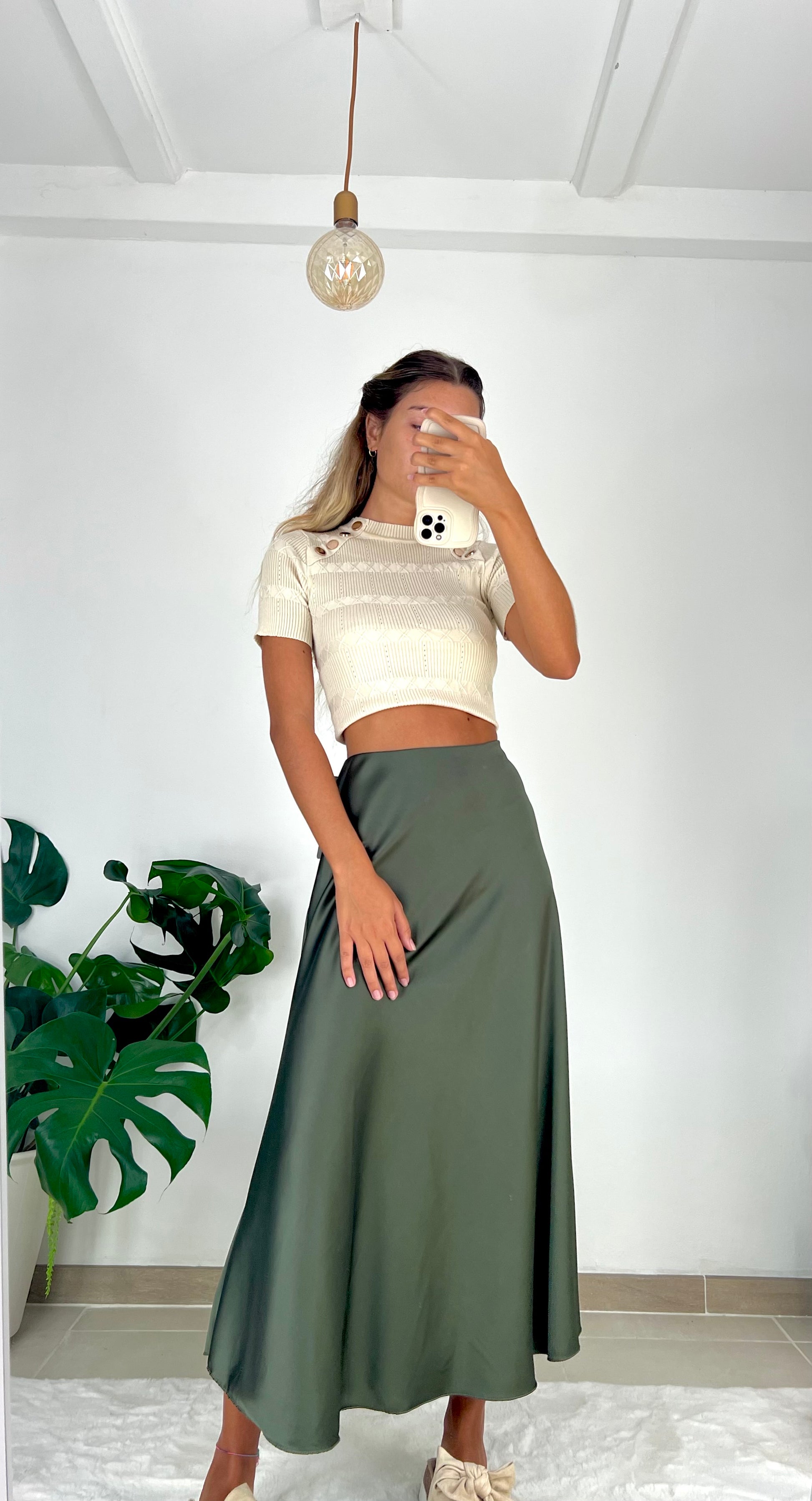Questa gonna in raso è perfetta per ogni occasione. Realizzata con materiale di alta qualità, conferisce un look elegante e sofisticato. Grazie alla sua versatilità, può essere indossata sia di giorno che di sera, rendendola un must-have nel tuo guardaroba. Non rinunciare alla bellezza e alla comodità con questa gonna in raso.