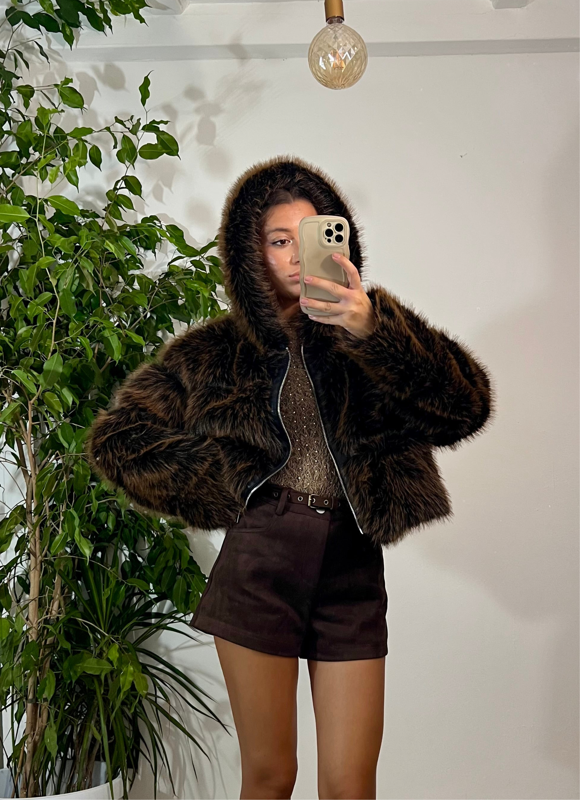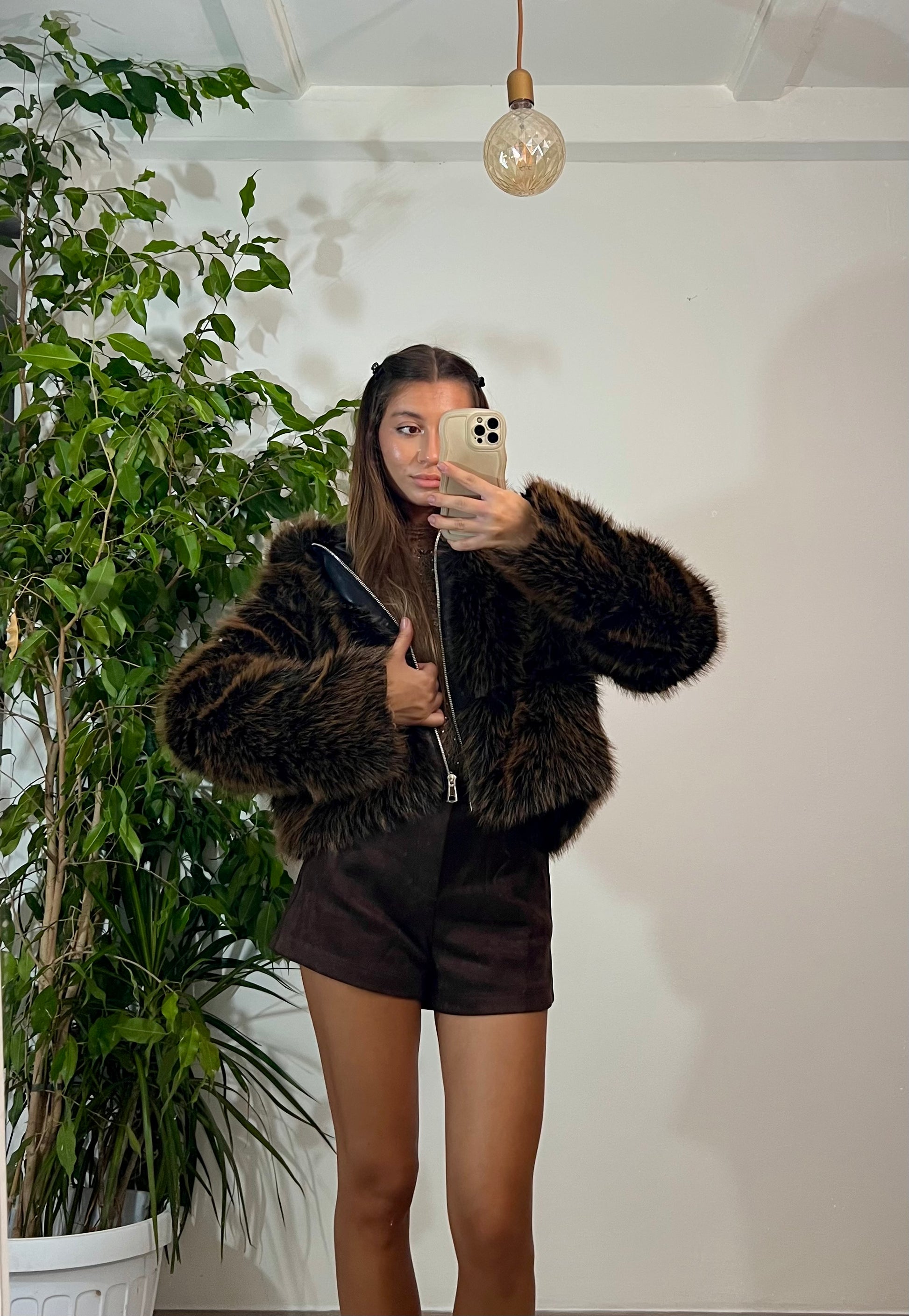Questa pelliccia marrone è realizzata con materiali di alta qualità, garantendo calore e comfort. Grazie al suo design elegante e alla sua morbidezza, è perfetta per completare il tuo look invernale e mantenerti al caldo nei mesi più freddi. Non c'è nulla di meglio che sentirsi avvolti da una pelliccia morbida e calda durante i giorni freddi
