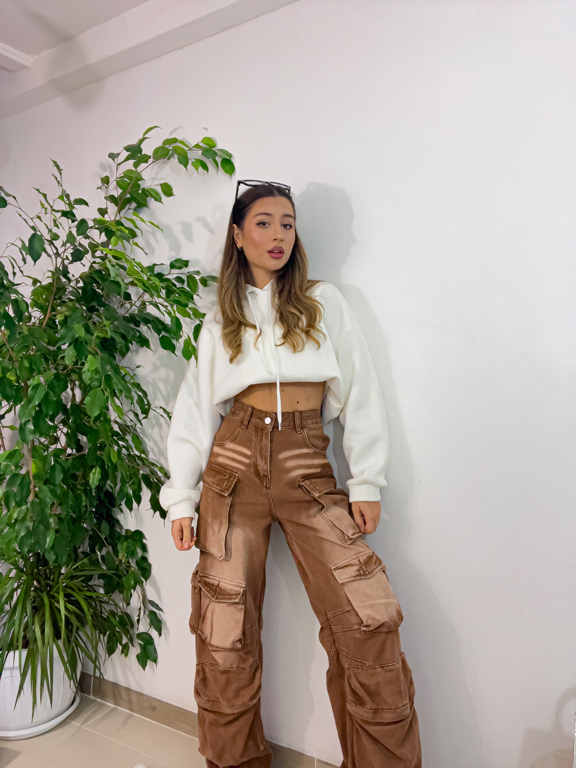 I Jeans Cargo Slavati MARRONE sono realizzati con una tinta marrone slavata. Questa colorazione conferisce un look moderno e casual ai jeans, perfetto per ogni occasione. I jeans sono comodi e resistenti, perfetti per chi cerca un abbigliamento di alta qualità e dal design unico.